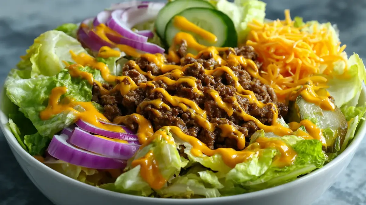 Big Mac Salad is basically your favorite fast-food burger deconstructed into a bowl—no bun, extra crunch, and way more control over ingredients. Imagine crisp shredded lettuce, seasoned ground beef, melty bits of cheddar, onions, pickles, and sesame-toasted crouton vibes (optional)—all drizzled with a creamy, tangy “special sauce” that tastes like the real deal.