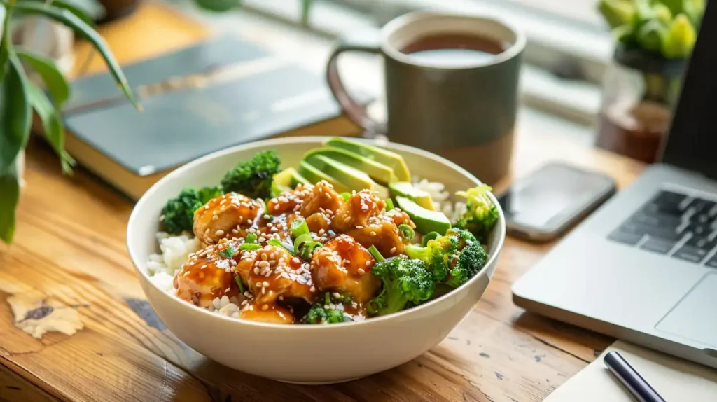 - Upgrade with Sticky Chicken Sauce: Want to make your bowl taste like restaurant takeout? Try this sticky sauce hack from Erin Lives Whole: mix soy sauce, honey, rice vinegar, garlic, sriracha, sesame oil, and ginger. Thicken it with a cornstarch slurry, then pour over your chicken and broccoli. Top with spicy mayo (mayo + sriracha + water), sesame seeds, or avocado slices for a next-level upgrade.