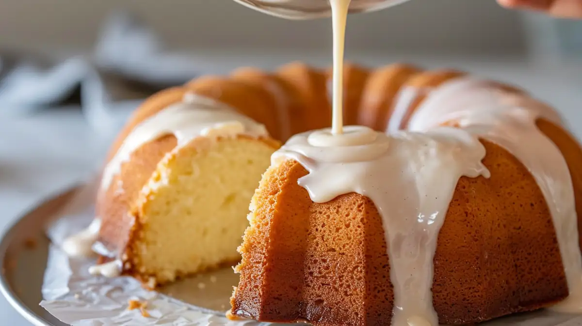 8. Whisk together glaze ingredients and drizzle over cooled cake. Slice and serve.