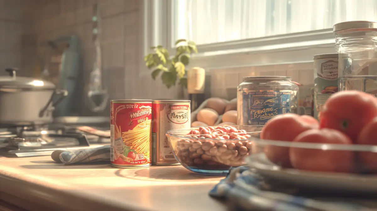 Eggs, rice, canned beans, or tortillas can create quick meals with almost nothing.